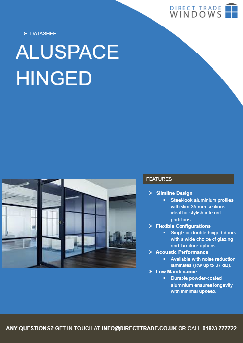 At Direct Trade Windows, we manufacture every AluSpace hinged door to exact standards. Our team combines technical expertise with a focus on design, delivering doors that perform as well as they look. Backed by durable aluminium, premium powder coating, and a 25-year finish guarantee, these hinged doors offer long-lasting quality with minimal maintenance.